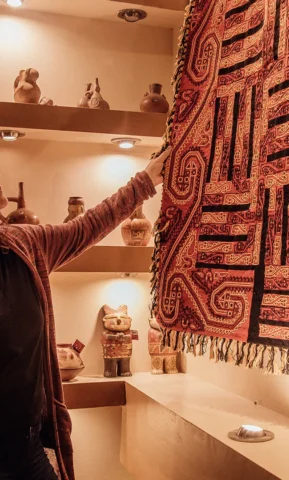 Recreamos telas y piezas del antiguo Perú utilizando técnicas ancestrales de las diferentes culturas Precolombinas Inca, Virreinal y Contemporáneo.