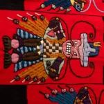 Manto Paracas representa a una divinidad antropomorfa con contorno de serpiente , representando a un hombre cirujano,ya que tiene en un brazo el cuchillo ceremonial “TUMI” de oro ,quienes los paracas fueron considerados como los primeros cirujanos ,donde realizaban la “Trepanación craneana”.Los colores representativos en el tapiz son rojo,azul ,amarillo y marron donde invocan la sensación de poder de las personas y solamente de los mejores cirujanos de estos tiempos,cubiertas de estos mantos.
