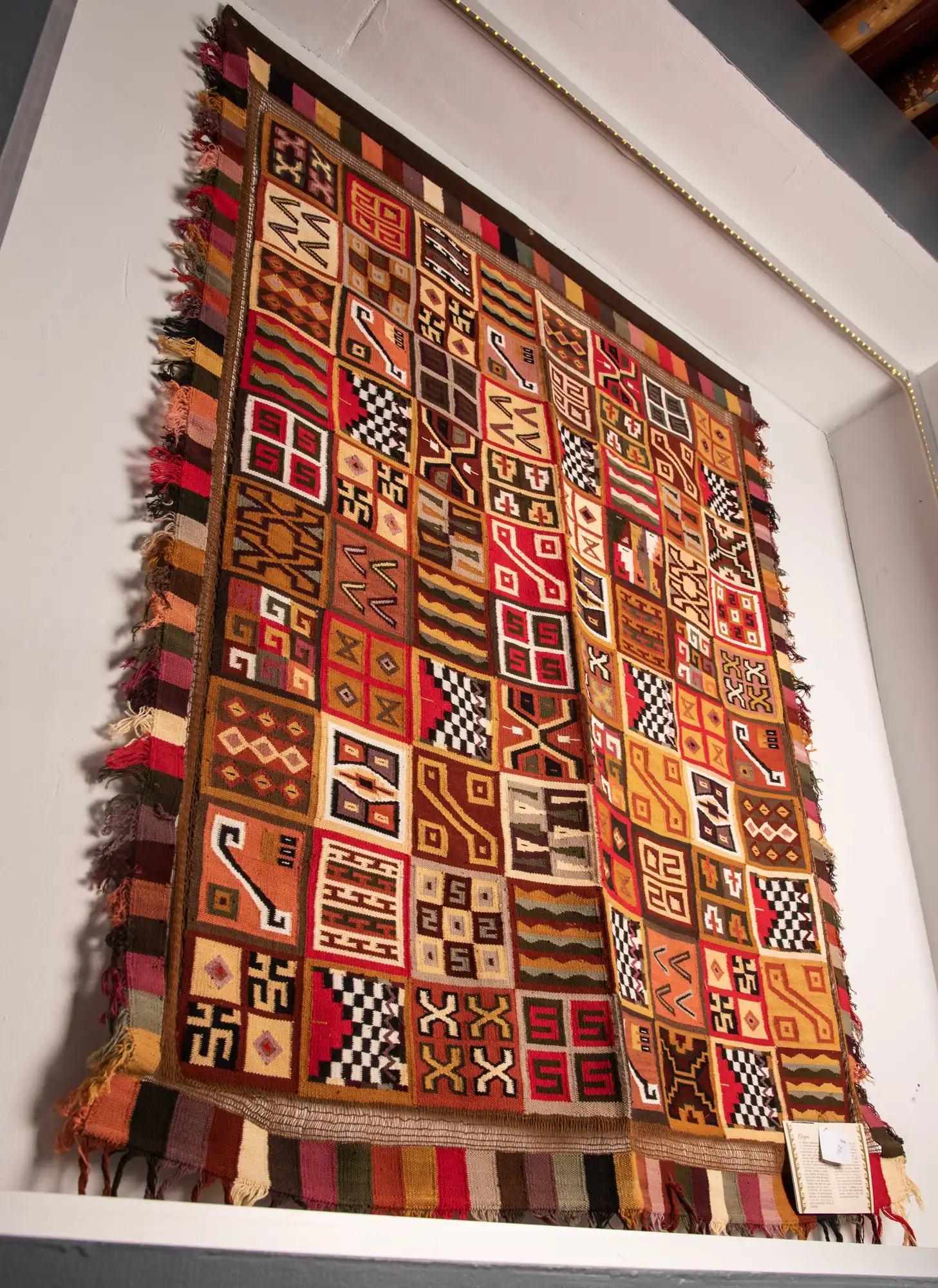 Este textil representa el tejido más fino y exquisito de la cultura Inka, aquellos textiles llamados cumbi, elaborados para la nobleza en especial para el Inka. En algunos casos eran ofrenda principal en los rituales. Los diseños geométricos que presenta el tapiz son los famosos tocapus relacionados con el calendario inka o como escritura perdida de los inkas, constando con iconografías geométricas al ser unidas forman palabras u oraciones. Los colores más resaltantes son el amarillo, rojo, rosado, marrón y naranja siendo representación fisica de la riqueza, conocimiento y poder del inka. La textura es llana y tupida sin relieve, realizada a mano.